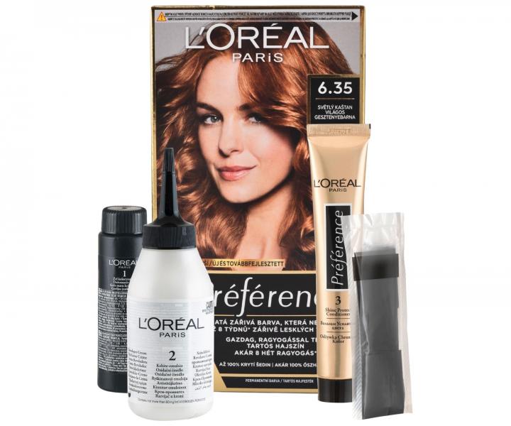 Permanentní oxidační barva Loréal Paris Préférence je dlouhotrvající barva s vysoce odolnými barvícími složkami, díky kterým vydrží barva lesklá a zářivá až 8 týdnů. Perfektně kryje šedivé vlasy. Složení obohacené o Hi-Shine Complex dodává vlasům neuvěřitelný dlouhotrvající lesk a luxusní barevný výsledek.
