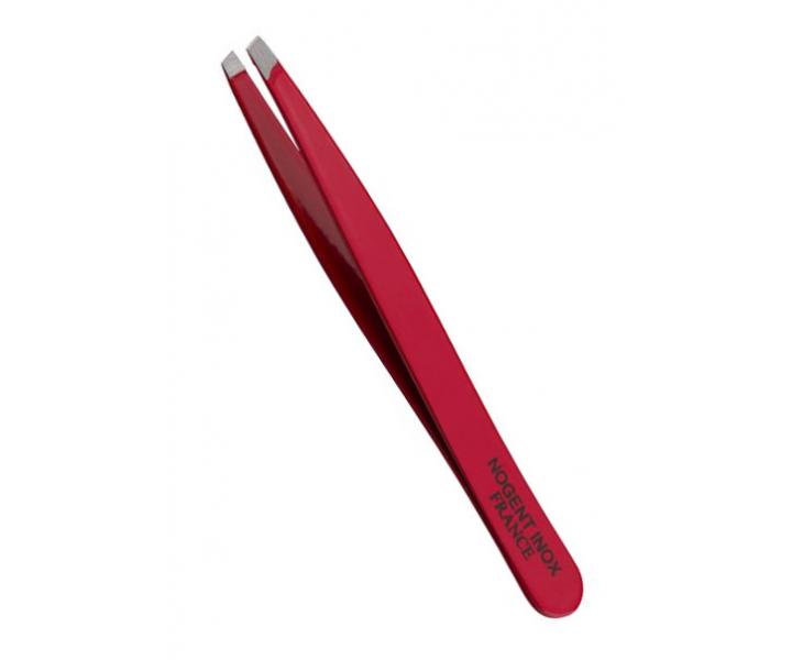 Úzká zkosená pinzeta v červeném provedení je nepostradatelným pomocníkem v každém kosmetickém salonu pro úpravu a vytrhávání nežádoucích chloupků.