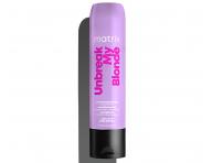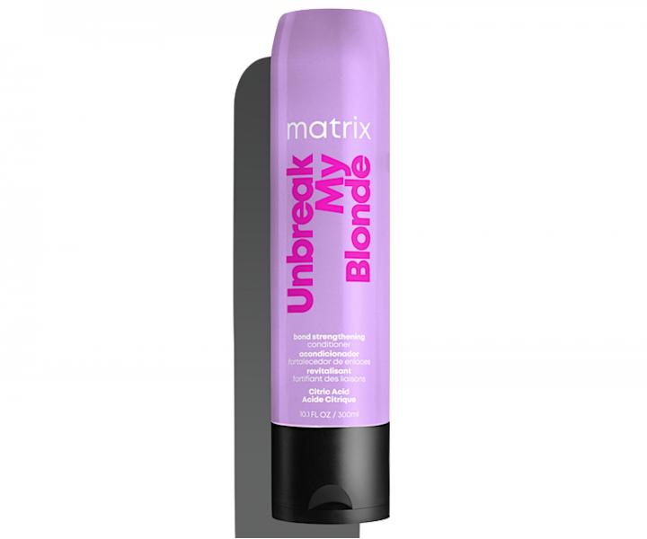 Posilující péče Matrix Unbreak My Blonde Total Results pro všechny typy zesvětlených vlasů díky obsahu kyseliny citronové vyživuje vlasové vlákno a zhebčuje vlasy, aniž by je zatížila. Vlasům poškozeným v důsledku zesvětlování je navrácen zdravý lesk, hebkost a sametový vzhled. Posilující péče dodává vlasům potřebnou hydrataci, a navíc minimalizuje jejich lámavost.