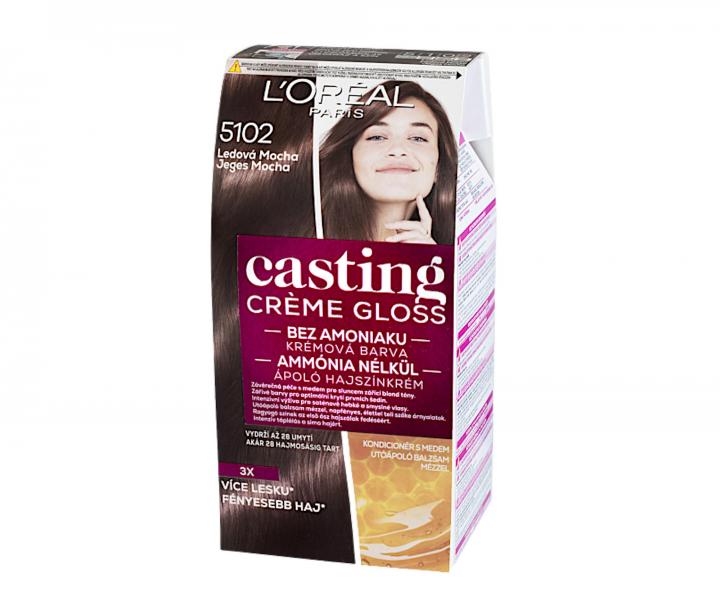 Přeliv bez amoniaku Loréal Paris Casting Créme Gloss poskytuje intenzivní zářivé odstíny až na 32 umytí. Škála přirozených barev rozzáří Vaše vlasy a poskytne jim vyjímečné odlesky. Optimálně kryje první šedivé vlasy a posiluje vlasové vlákno od kořínků ke konečkům. Složení obohacené o mateří kašičku zanechává vlasy až 4x lesklejší. Díky krémové konzistenci barva nestéká, aplikace je snadná a jako bonus má jemnou ovocnou vůni. Přeliv je vhodný pro všechny typy vlasů - barvené, přirozené i melírované.
