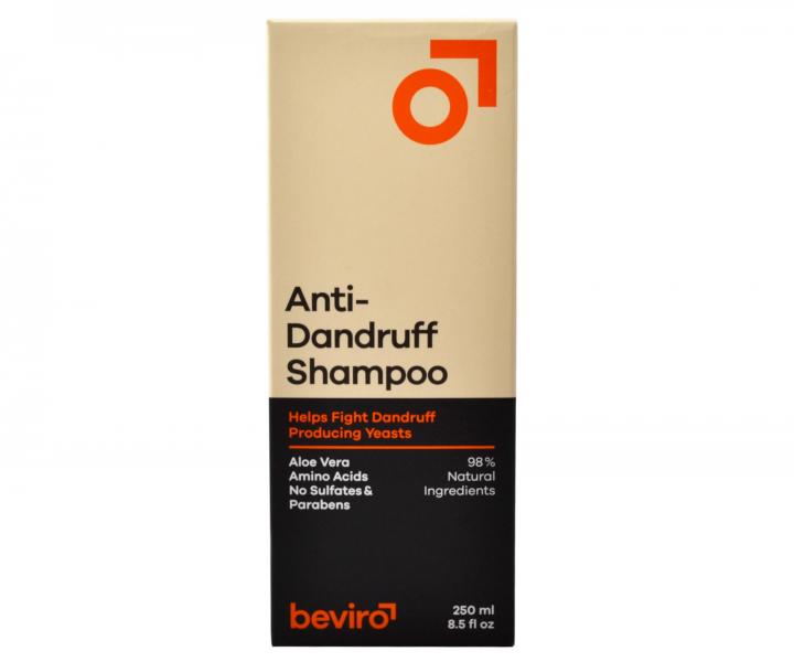 Šampon proti lupům Beviro Anti-Dandruff Shampoo je určen pro muže a bojuje s dvěmi nejčastějšími příčinami vzniku lupů. Jednou z nich je příliš suchá pokožka hlavy a další přítomnost kvasinky Malassezia. Obsahuje účinné látky jako například aloe vera, komplex aminokyselin, bylinné extrakty nebo Cetylpyridinium Chloride. Obsahuje 98% přírodních látek. Vlasy důkladně čistí, vyživuje a dodává jim lesk.