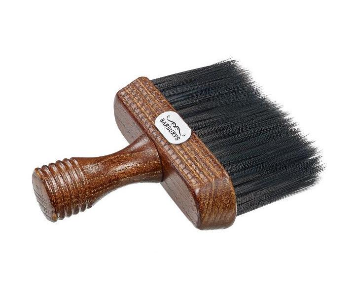 Oprašovací štětka vyrobená z mahagonového dřeva. Mahagonové dřevo je známé pro svoji tvrdost a schopnost odolat vlhkosti. Mahagon se velmi často používá na výrobu nábytku či kytar.