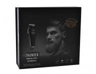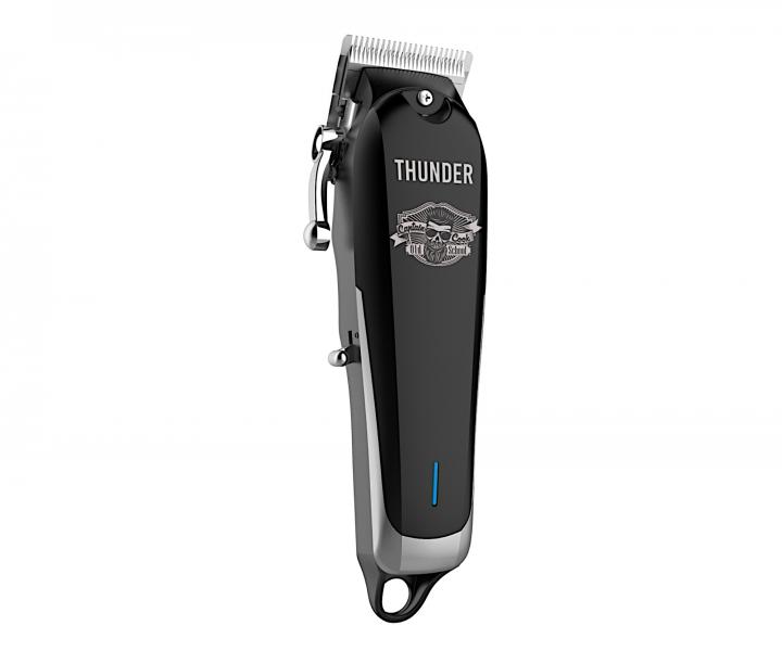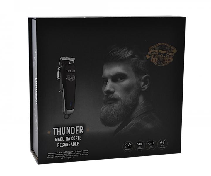 Profesionální strojek Captain Cook Thunder disponuje motorem s tichým chodem a nízkými vibracemi o výkonu 6500 otáček za minutu, díky čemuž je vhodný pro stříhání vlasů i vousů. Strojek je vybaven dvěma střihacími hlavicemi z japonské oceli o šířce 45 mm, standardní hlavicí pro klasické střihy a flat hlavicí pro velmi nízké střihy. Díky aretovací páčce na boku strojku je možné plynule měnit výšku střihu strojku. Výšku střihu lze také měnit pomocí plastových nástavců s kovovou sponou o velikosti 1,5 mm, 3 mm, 4,5 mm, 6 mm, 9 mm a 12 mm, které jsou součástí balení. Díky ergonomickému tvarování rukojeti strojek skvěle padne do ruky. Snadnou manipulaci umožňuje bezkabelový provoz a nízká hmotnost strojku. Doba provozu strojku je 300-420 minut, doba nabíjení pak 180 minut. O stavu baterie strojku informuje LED dioda na těle strojku. Součástí balení je praktický nabíjecí stojánek, nabíjecí adaptér, olej, čisticí kartáček, krytka hlavice a semišový pytlík.