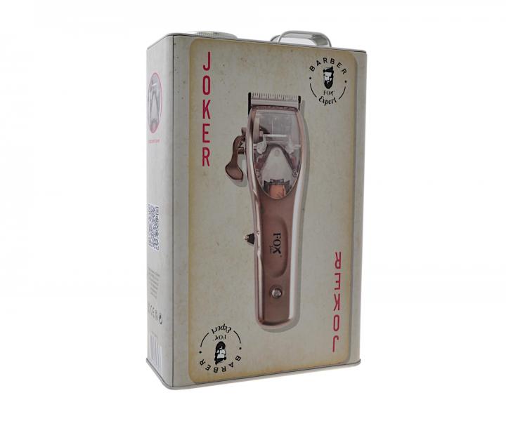 Profesionální strojek na vlasy Fox Joker v mosazné barvě vás osloví svým unikátním designem s průhlednou částí těla. Strojek disponuje 45 mm střihací hlavicí z nerezové oceli pokryté povlakem Diamond Blade, díky kterému je ostří hlavice trvanlivější a odolnější vůči zahřívání a výkonným motorem s 10 000 ot./min. Výšku střihu lze za pomoci aretační páčky nastavit od 0,3 mm do 3 mm. Součástí balení je pět magnetických nástavců o velikosti 1,5 mm, 3 mm, 6 mm, 10 mm a 13 mm. Na jedno plné 70 minutové nabíjení je doba provozu strojku až 120 minut.