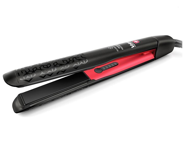 Profesionální žehlička na vlasy s keramicko-turmalínovým povrchem pro rovnoměrné rozložení tepla. Plovoucí destičky umožňují lepší kontakt s vlasy a výsledkem jsou dlouhotrvající vyhlazené hebké vlasy. Teplotu lze nastavit v rozmezí od 120°C do 230°C. Pokud se žehlička nepoužije po dobu 60 minut destičky se automaticky vypnou, žehlička přejde do režimu spánku. Žehlička má paměťovou funkci. Při vypnutí přístroje zůstane poslední nastavená teplota uložená v paměti až do příštího zapnutí přístroje. Negativně nabité ionty pomáhají snižovat statickou elektricitu vlasů, udržují ve Vašich vlasech hydrataci. Lehké bzučení, které vydává generátor iontů je třeba považovat za normální. Žehlička má ergonomický tvar, pro snadnější úchop a otočný kabel o 360°, zabraňuje zamotávání a usnadňuje manipulaci se žehličkou při práci. Balení obsahuje obal, který je odolný proti teplu a silikonovou krytku žehlících ploch.