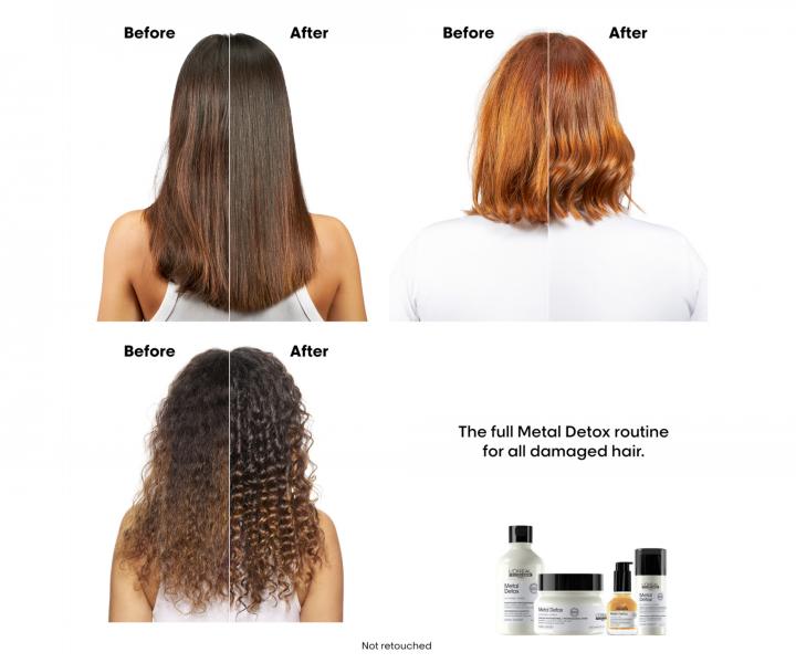 Řada pro barvené a poškozené vlasy L’Oréal Professionnel Serie Expert Metal Detox máme v nabídce ve více variantách - typ cestovní sada - šampon + maska, dárková sada - šampon + maska, dárková sada - šampon + maska + olej, maska - 250 ml, maska - 500 ml, ochranný krém - 100 ml, olej - 50 ml, předšamponová péče - 250 ml, sada - šampon + maska + předšamponová péče 45 ml zdarma, sada - šampon + olej + předšamponová péče 45 ml zdarma, šampon - 100 ml, šampon - 1000 ml, náhradní náplň, šampon - 1500 ml, šampon - 300 ml, šampon - 500 ml a šampon - 500 ml, náhradní náplň. Na této straně naleznete přehled všech verzí - parametrem členění je typ. Řada pro barvené a poškozené vlasy L’Oréal Professionnel Serie Expert Metal Detox v prodeji od 249,- Kč do 1.259,- Kč se slevou až 11 %.