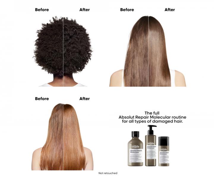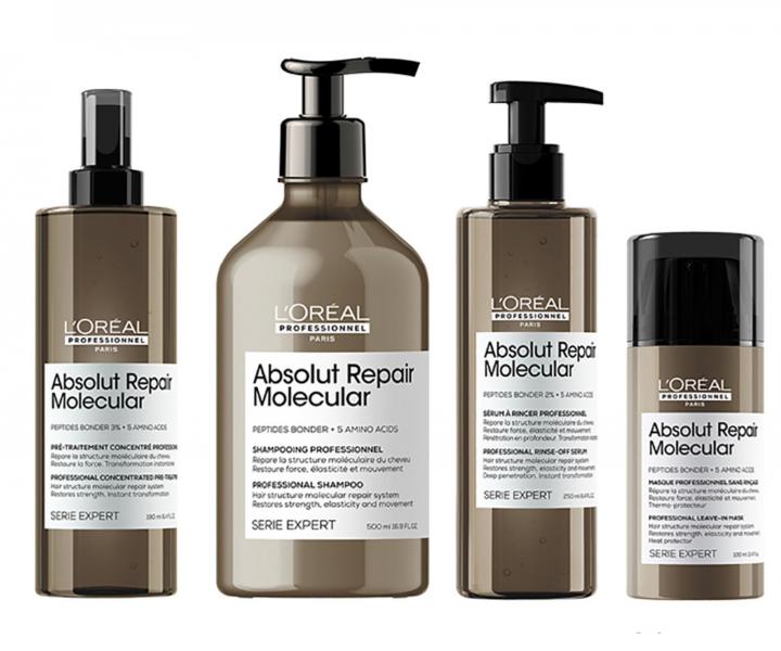 Řada pro poškozené vlasy Loréal Professionnel Serie Expert Absolut Repair Molecular máme v nabídce ve více variantách - typ bezoplachová maska - 100 ml, cestovní sada - šampon + sérum, cestovní sada - šampon + sérum + bezoplachová maska, dárková sada - šampon + sérum, dárková sada - šampon + sérum + bezoplachová maska, dvoufázový olej - 30 ml, dvoufázový olej - 90 ml, maska - 150 ml, maska - 250 ml, maska - 500 ml, přípravná péče - 190 ml, šampon - 1000 ml, náhradní náplň, šampon - 300 ml, šampon - 500 ml, šampon - 500 ml, náhradní náplň a sérum - 250 ml. Na této straně naleznete přehled všech verzí - parametrem členění je typ. Řada pro poškozené vlasy Loréal Professionnel Serie Expert Absolut Repair Molecular v prodeji od 409,- Kč do 1.225,- Kč se slevou až 10 %.