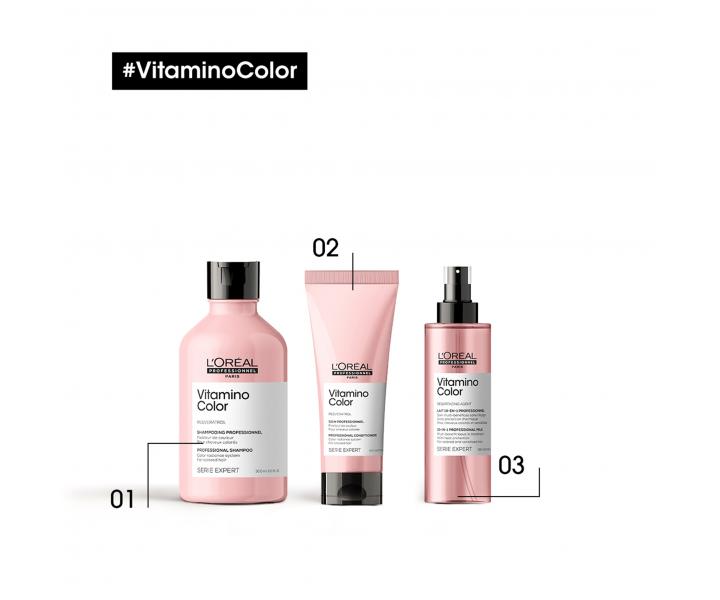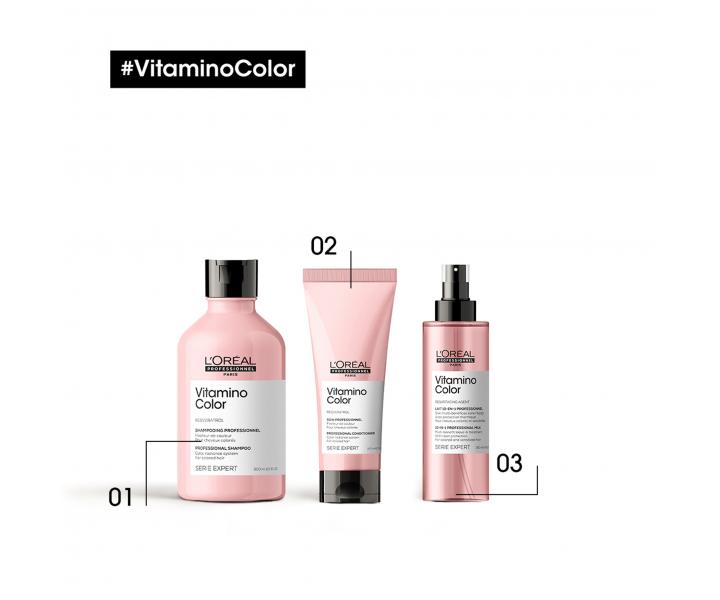 Řada pro zářivou barvu vlasů L’Oréal Professionnel Serie Expert Vitamino Color máme v nabídce ve více variantách - typ dárková sada - šampon + maska, maska - 250 ml, maska - 500 ml, péče - 200 ml, péče - 400 ml, péče - 500 ml, péče - 750 ml, šampon - 1500 ml, šampon - 300 ml, šampon - 500 ml, šampon - 500 ml, náhradní náplň a sprej - 190 ml. Na této straně naleznete přehled všech verzí - parametrem členění je typ. Řada pro zářivou barvu vlasů L’Oréal Professionnel Serie Expert Vitamino Color v prodeji od 353,- Kč do 929,- Kč se slevou až 9 %.