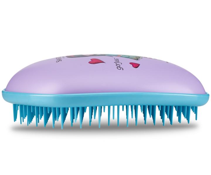 Kartáč na rozčesávání vlasů s dětskými motivy má tři velikosti štětin, které jsou z plastického a flexibilního materiálu. Díky tomu je rozčesávání bezbolestné a snadné. Kartáč je vhodný pro všechny typy vlasů a to i pro dětské. Díky ergonomickému tvaru padne do ruky každému.