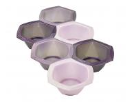 Rozjasněte svůj kadeřnický salon sadou plastových barvicích misek Sibel Mish'Mash ve třech moderních barvách s metalickými odlesky - růžová, světle fialová a fialová. Misky je možné různě propojovat dohromady a vytvořit si tak paletu barev nebo je využívat samostatně. Pro bezpečnou manipulaci má každá miska na spodní straně protiskluzový kroužek. Objem každé z misek je 420 ml.