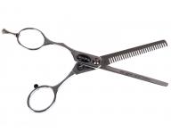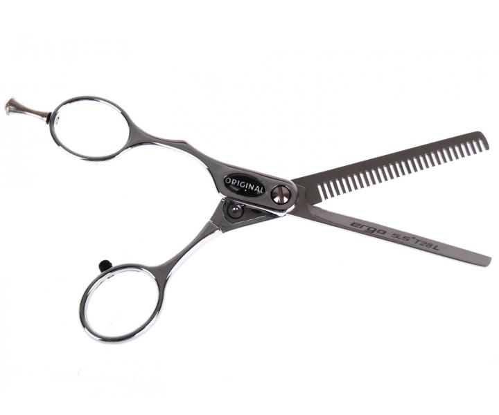 Kadeřnické efilační nůžky pro leváky mají oddělávací opěrku na prst a gumovou zarážku mezi kroužky. Čepele jsou vyrobeny z vysokce kvalitní nerezové oceli.