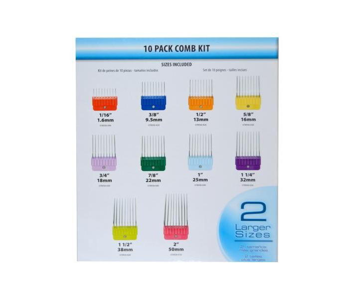 Sada náhradních plastových hřebenů s kovovými zuby. Velikost hřebenů je barevně rozlišená pro snadnou a rychlou orientaci. Hřebeny jsou určené pro strojky Oster 616-91, 616-50, 606-95, 97-44, 916-31, 956-31.