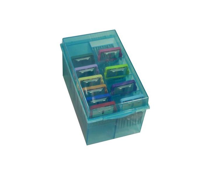 Sada náhradních plastových hřebenů s kovovými zuby. Velikost hřebenů je barevně rozlišená pro snadnou a rychlou orientaci. Hřebeny jsou určené pro strojky Oster 616-91, 616-50, 606-95, 97-44, 916-31, 956-31. Upozornění: Nástavce nejsou určeny pro vyholovací hlavice!!! (s.50,s.40,s.00000,s.0000,s.000) Velikosti: 1,6mm, 9,5mm, 13mm, 16mm, 18mm, 22m... více »