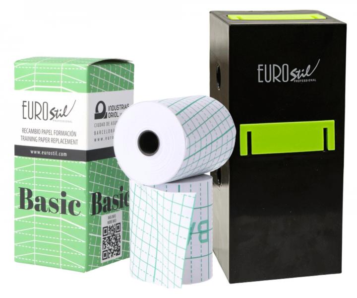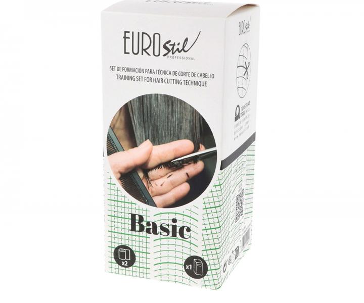Základní tréninková sada pro nácvik technik střihu vlasů Eurostil Professional Basic je navržena pro rozvoj základních kadeřnických dovedností u začínajících kadeřníků. Sada obsahuje dvě tréninkové papírové role, které slouží jako pomůcka při osvojování střihových technik. Role jsou potištěny předem vyznačenými střihovými liniemi, které se na papíru střídají a znázorňují různé techniky střihu. Tím umožňují přesné vedení nůžek podle daného úhlu či směru, orientace ruky a koordinace pohybů. Role jsou umístěny v dávkovači se dvěma vstupy, které umožňují trénink ve dvou výškových úrovních. Dávkovač je kompatibilní s běžnými stojany a lze jej snadno upevnit na pracovní desku.