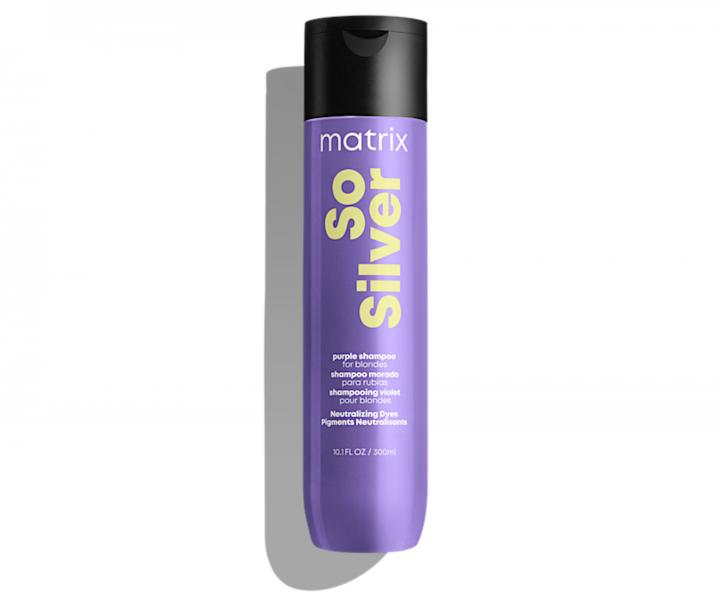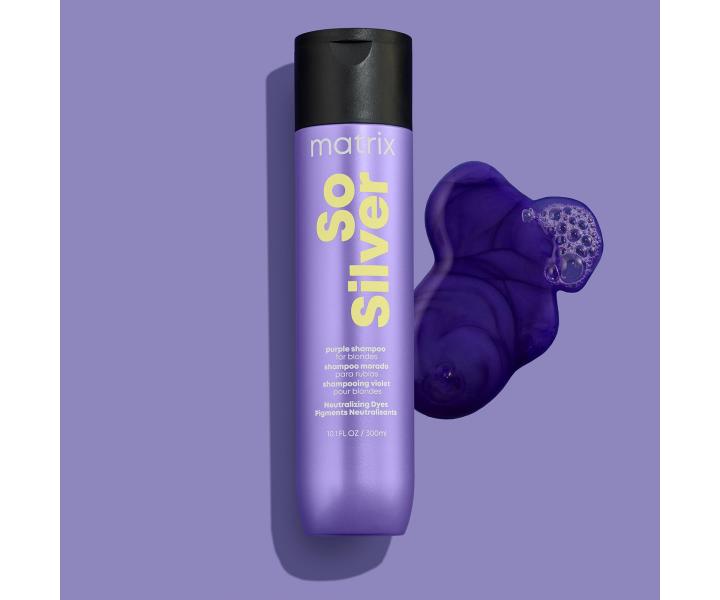Šampon Matrix So Silver pro blond, melírované a šedivé vlasy neutralizuje nežádoucí žluté a teplé tóny. Šampon je vhodný pro barvené i přírodní blond vlasy. Obsahuje fialové pigmenty, které udržují zářivost blond barvy vlasů. Šampon vlasy jemně čistí a chrání blond barvu vlasů, nevysušuje vlasy.