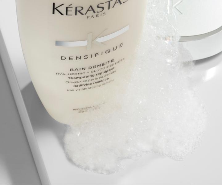 Hydratační a zpevňující šampónová lázeň Kérastase Densifique Bain Densité pro každodenní použití je speciálně navržena pro vlasy viditelně postrádající hustotu. Šamponová lázeň zpevňuje vlastové vlákno a dodává vlasům bohatší texturu a pevnost. Navrací vlasům hustotu, pružnost a bohatost bez zatížení.
