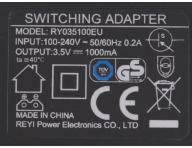 Input: 100-240 V, 50/60 Hz, 0,2 A