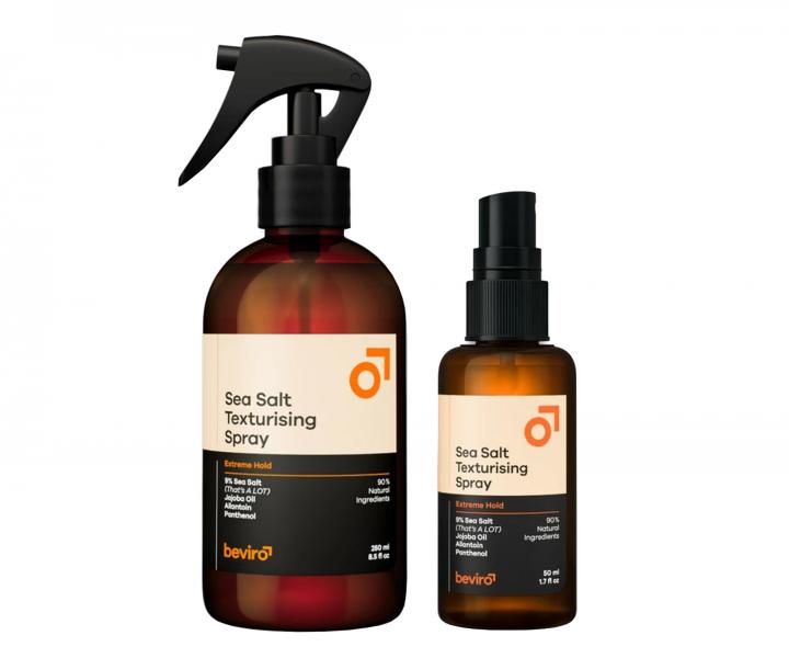 Slaný texturizační sprej Beviro máme v nabídce ve více variantách - typ střední fixace - 250 ml, střední fixace - 50 ml, velmi silná fixace - 250 ml a velmi silná fixace - 50 ml. Na této straně naleznete přehled všech verzí - parametrem členění je typ. Slaný texturizační sprej Beviro v prodeji od 265,- Kč do 515,- Kč.