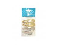 Sponka pukačka Duko je známá pro dobré držení pramenů vlasů, aniž by ve vlasech tlačila. Je vhodná pro všechny typy vlasů. Balení obsahuje 2 zlaté a 2 stříbrné sponky. Balení: 4 ks (2x stříbrná a 2x zlatá) Barva: stříbrná a zlatá Délka: 58 mm