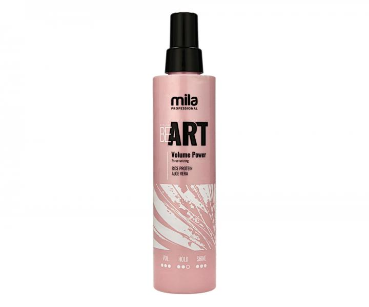 Sprej Mila Be Art Volume Power zvětší objem vašich vlasů již od kořínků. Složení obohacené o výtažky z aloe vera a rýžového proteinu má revitalizační a restruktualizační účinky, díky kterým sprej pomáhá vlasové vlákno zpevňovat a vyživovat od kořínků až ke konečkům. Sprej zanechává vlasy lesklé, měkké, pružné a objemné.