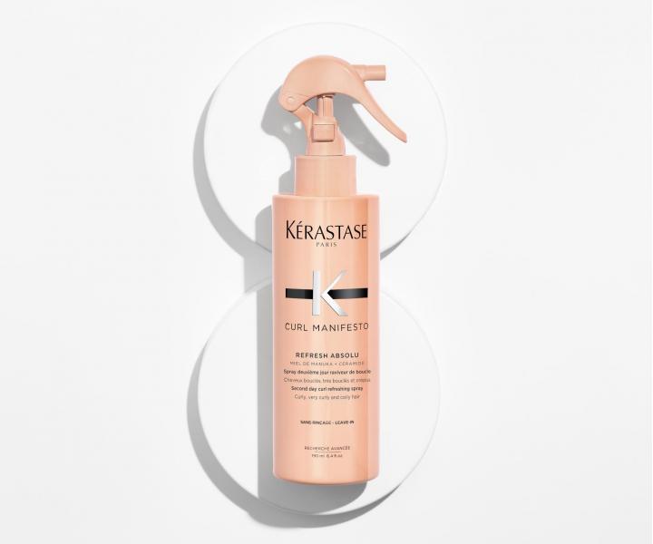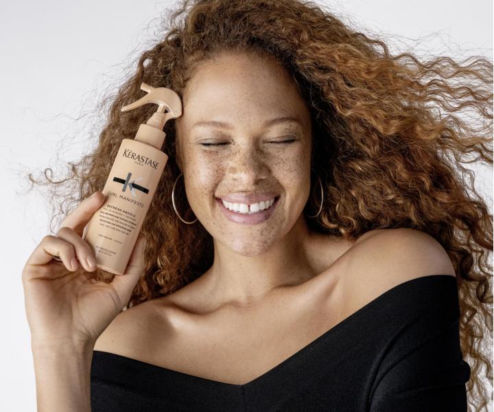 Sprej pro osvěžení kudrlin Kérastase Curl Manifesto je dokonalou kombinací vědy a luxusu. Řada Curl Manifesto obsahuje ty nejefektivnější ingredience pro vyživení a posílení vlnitých, kudrnatých a afro vlasů. Jedná se o profesionální péči podporující přirozenou texturu vlasů a díky tomu budou při pravidelném používání o 73 % hydratovanější, o 81 % více definované a o 99 % méně náchylné k lámavosti. Sprej pro osvěžení kudrlin obohacený o manukový med a ceramid okamžitě obnovuje hydrataci, revitalizuje definování a hebkost kudrlin mezi jednotlivými mytími. Podporuje vytváření textury, podporuje jejich pružnost a zároveň redukuje krepatění a podporuje lesk.