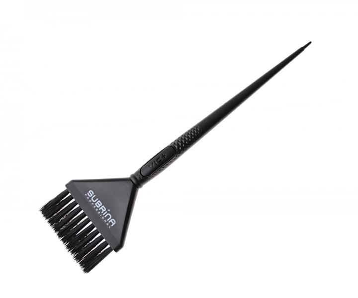 Štětec na barvení Subrina Professional je praktickým pomocníkem pro míchání a nanášení barvy při barvení i melírování vlasů. Štětec je široký 5,5 cm s jedenácti svazky štětin v jedné řadě. Je vyroben z pevného a odolného plastového materiálu.