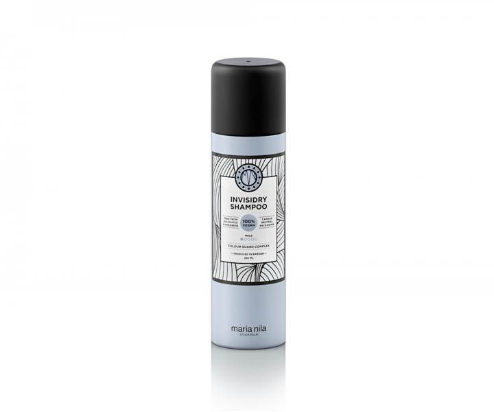 Suchý šampon Maria Nila Invisidry Shampoo rychle osvěží vlasovou pokožku i samotné vlasy mezi jednotlivými mytími a dodá jim čerstvý vzhled. Současně vlasům poskytuje lehký objem. Jemná veganská receptura se snadno vstřebává a nezanechává nežádoucí bílé stopy. Je tak vhodný pro světlé i tmavé vlasy. Color Guard Complex chrání vlasy před UV zářením a volnými radikály a garantuje delší životnost barvy vlasů. Suchý šampon má ovocnou vůni mučenky a jablka.