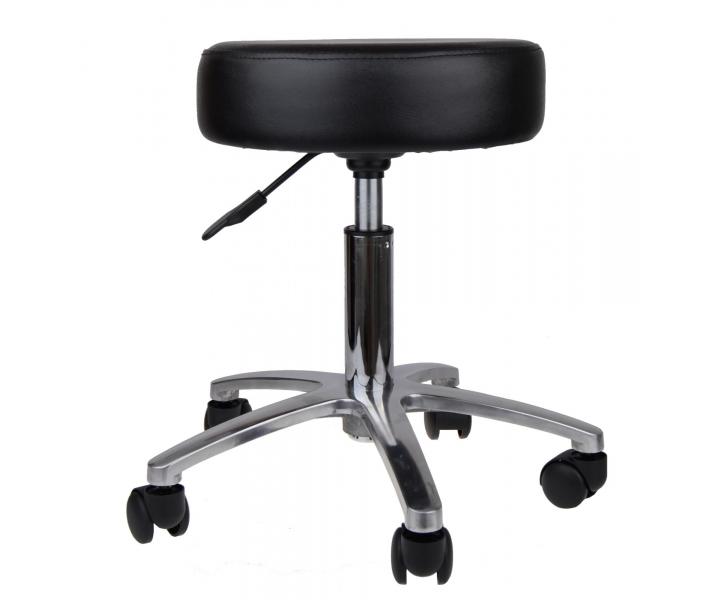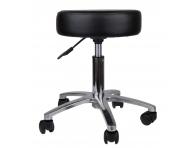 Kosmetický a kadeřnický taburet Detail BOB na kolečkách, výškově nastavitelným sedem, chromovou stabilní konstrukcí a polstrováním z umělé kůže pro komfortní pohodlí při práci. Taburet sedí na pětipaprskovém matném chromovém podstavci a je možné použít ho i v jiných oborech, např. pro vizážistky, fotografky i další.