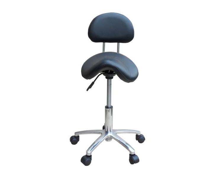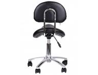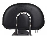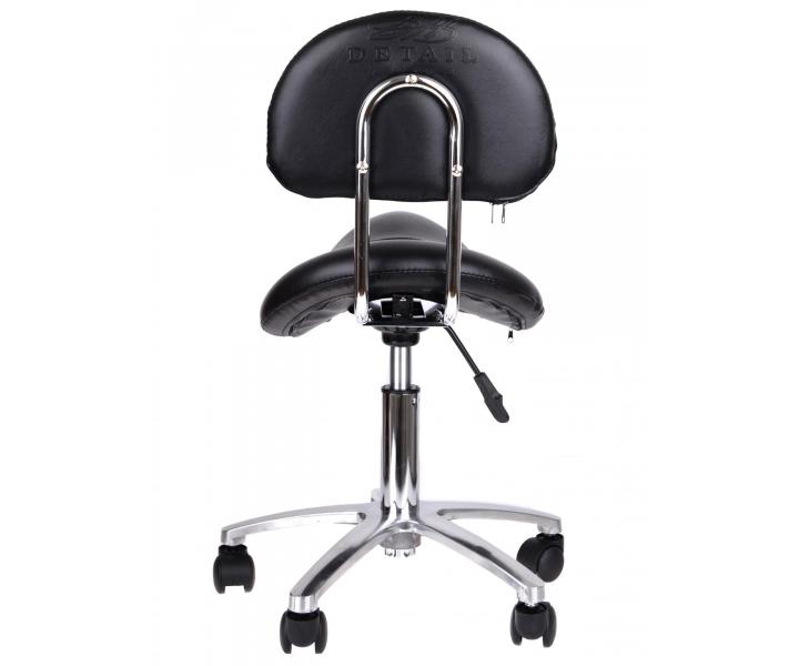 Kosmetický a kadeřnický taburet Detail T2 na kolečkách s opěrkou, výškově nastavitelným sedem, chromovou stabilní konstrukcí a polstrováním z umělé kůže pro komfortní pohodlí při práci. Taburet sedí na pětipaprskovém matném chromovém podstavci a je možné použít ho i v jiných oborech, např. pro vizážistky, fotografky i další. Koženka má na spodní straně opěrky zip, díky kterému je snadno snímatelná. Na zadní straně opěrky krásné vtištěné logo Detail - Hair style.