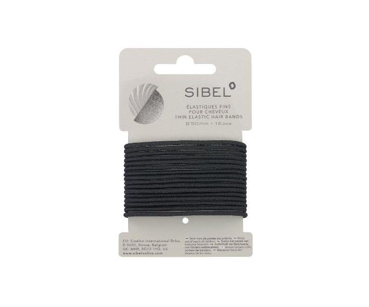 Tenké gumičky do vlasů Sibel - 50 mm, 16 ks, černé