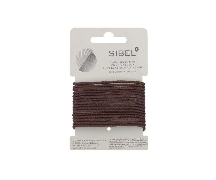 Tenké gumičky do vlasů Sibel - 50 mm, 16 ks, hnědé