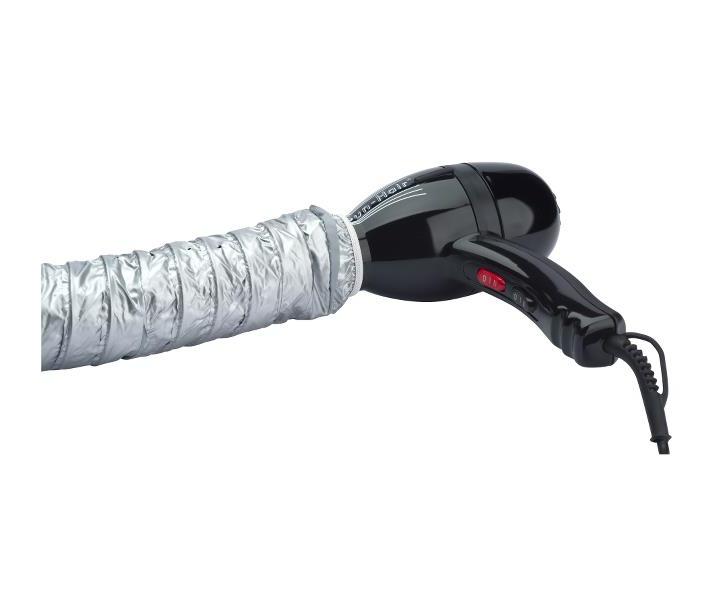Textilní kadeřnická sušící helma na vlasy je velice lehká a praktická. Helma má univerzální otvor, který je na gumu a přizpůsobí se tak různým velikostem hubic fénů. Otvor má průměr 4 cm, který můžete zvětšit na 7 cm. Helma má univerzální otvor i pro hlavu, kolem obvodu hlavy jde helma utáhnout pomocí tkaničky s brzdou.