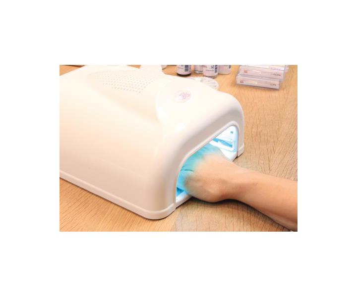 UV lampa Sibel pro vytvrzování gelu nebo gel laku na nehty. Součástí balení jsou čtyři speciální zářivky s ultrafialovým zářením. Lampa má jednoduchý a účelový vzhled, skvěle plní svoji funkci. Je vhodná jak pro profesionální nehtové salony, tak i pro domácí použití. Výsuvný spodní zásobník umožňuje lepší pohodlí vašim rukou. Na zadní straně se nachází přepínač se 3 funkcemi - poloha Timer On, Timer Off, Continuons Lamp On. Automatický časovač 90 až 120 vteřin, po kterou dobu bude lampa zapnuta.