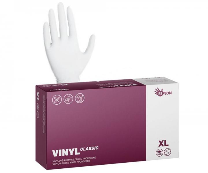 Vinylové pudrované rukavice Espeon Vinyl Classic - 100 ks, bílé máme v nabídce ve více variantách - velikost L, M, S a XL. Na této straně naleznete přehled všech verzí - parametrem členění je velikost. Vinylové pudrované rukavice Espeon Vinyl Classic - 100 ks, bílé v prodeji za 85,- Kč.