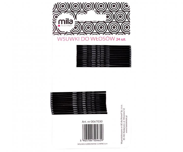 Praktická plochá a vlnitá sponka Mila o velikosti 6 cm je černě lakovaná. Sponka je kvalitní a díky své pevnosti dobře drží ve vlasech. Barva: černá Délka: 6 cm Počet kusů v balení: 24 ks