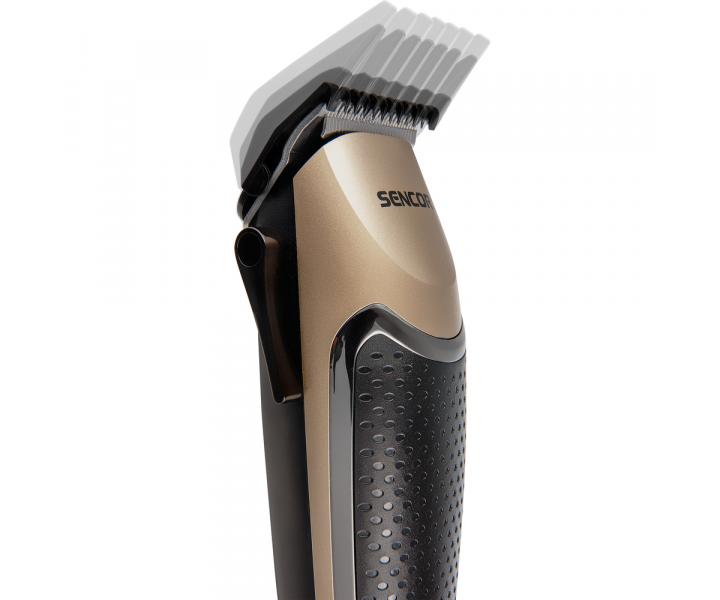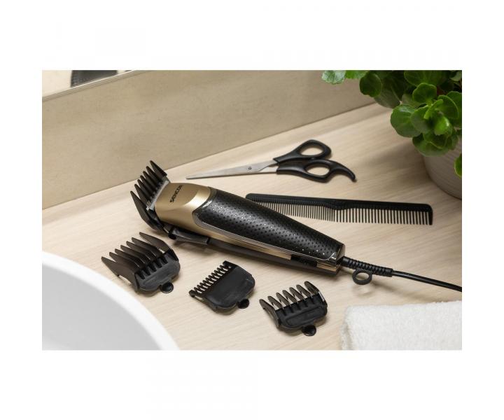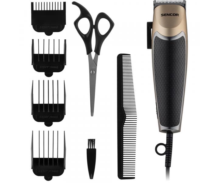 Zastřihovač vlasů Sencor zaručuje pohodlné stříhání vlasů pomocí čepele z nerezové oceli o šířce 45 mm. Díky aretovací páčce na boku zastřihovače lze nastavit výšku střihu od 1 do 3 mm. Výšku střihu lze měnit i za pomoci plastových nástavců o velikosti 3 mm, 6 mm, 9 mm a 12 mm. Zastřihovač se díky svému ergonomickému tvaru pohodlně drží v ruce. Součástí balení je kromě plastových nástavců také hřeben, nůžky, čisticí kartáček a olej.