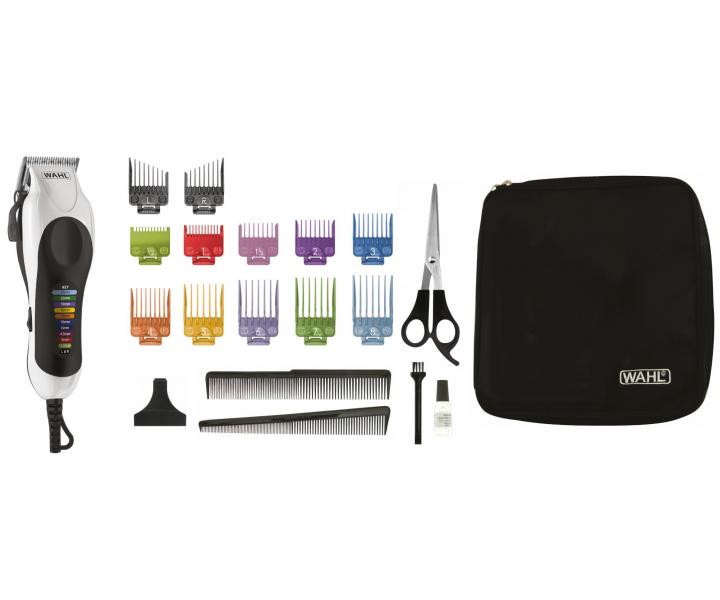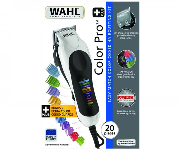 Stříhací strojek na vlasy Wahl Colour Pro 20104-0460 pro domácí použití s profesionální stříhací hlavicí šířky 46 mm. Po případném otupení lze stříhací hlavici přebrušovat. Velmi bohaté příslušenství.