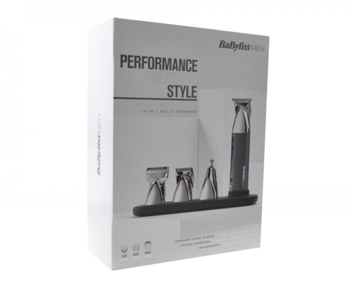 Multifunkční zastřihovač Babyliss MT996E je výkonný a vodotěsný strojek vhodný pro každodenní použití. Hlavice vyrobené z japonské oceli jsou vzhledem ke své šířce a jemnosti zoubků určeny pro konturování, detailní a dokončovací práce. Díky 4 nástavcům s magnetickým uchycením pro pohodlnou výměnu je strojek vhodný pro úpravu vlasů, vousů nebo chloupků. Při plném (3 hodiny) napájení lithium-iontové baterie je doba provozu strojku 2 hodiny. Zastřihovač disponuje digitálním indikátorem životnosti baterie.