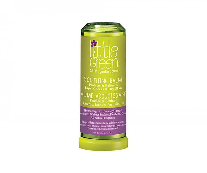 Zklidňující balzám Little Green Soothing Balm je ideální na hydrataci nejen popraskaných rtů, ale také tváří a suchých či odřených míst. Balzám má velmi lehké složení obsahující včelí vosk a jojobu, díky kterým balzám hydratuje a vyživuje. Díky obsahu avokádového oleje a pupalky má balzám zklidňující účinky a chrání před letními i zimními kožními onemocněními. Balzám se rychle vstřebává, nemastí a nezanechává skvrny na oblečení. Balení balzámu ve formě tyčinky má ideální velikost i pro malé dětské ručičky a umožňuje tak snadnou aplikaci i dětem samotným. Složení neobsahuje ftaláty, sulfáty, parabeny a lepek.